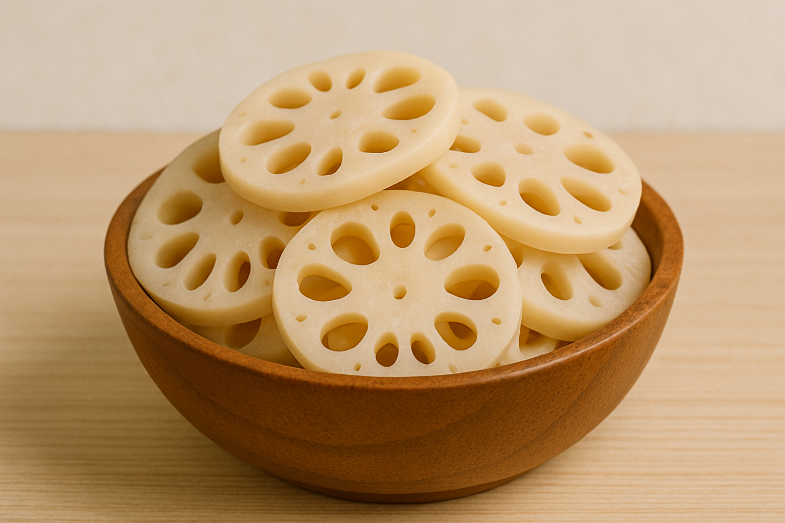 Salads: Thinly sliced raw lotus root adds a crispy texture to salads. Mix it with greens, nuts, and a light dressing for a refreshing dish.